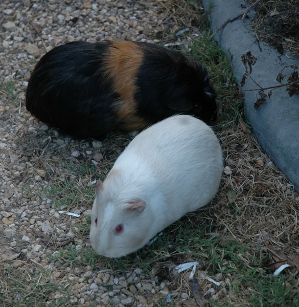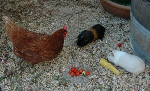 Feeding time! The g-pigs are doing much better since they have been left to roam the garden. They rarely even pass a 4 metre line, choosing instead to hang around their boxes and shelter. The chooks have developed a real appetite for the tomatoes, but not quite to the extreme as the g-pigs, particularly Jazz.