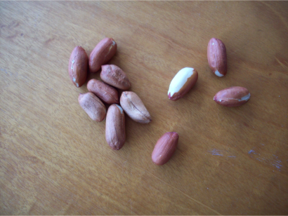 1. I also read that those peanuts with no skin membrane may not germinate properly. I think that when they expand with moisture the seed has a tendency to split. Those without membranes, or even damaged ones I wrapped in tissue paper and planted anyway to see how they go.