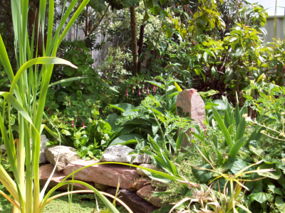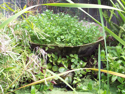 This little pond is a recent edition to the garden and fills from the strawberry garden (aquaponics) to flow into the main pond where water cycles back through the strawberries and repeats its cycle. This pond is currently home to a large area of watercress which I think is a terrific thing to have in the garden.