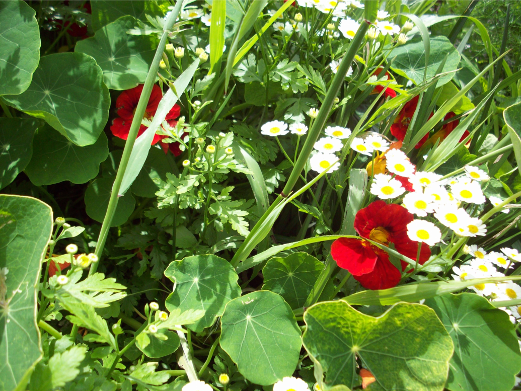 - it acts as a small wind break in the garden and offers shelter to the main garden bed plants while,