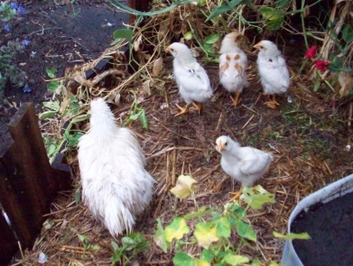 Since about 2am yesterday morning we have had a reasonable amount of rain. This hasn’t stopped Jenny from standing out in it sheltering her little brood. They are nearly always on the go looking for food and are starting to leap up onto higher objects to perch.