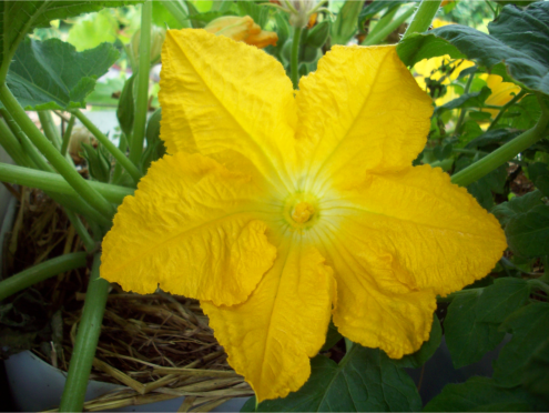 The pumpkin vines are working on filling out their fruit and still venturing forth to new areas of the garden and setting new fruit. I have quietly delighted in hunting down pumpkins and melons to keep a check on things after finding one pumpkin starting to swell out between the wood of the raised garden and the back fence. Another day or two and I would have had to cut it out to remove it!