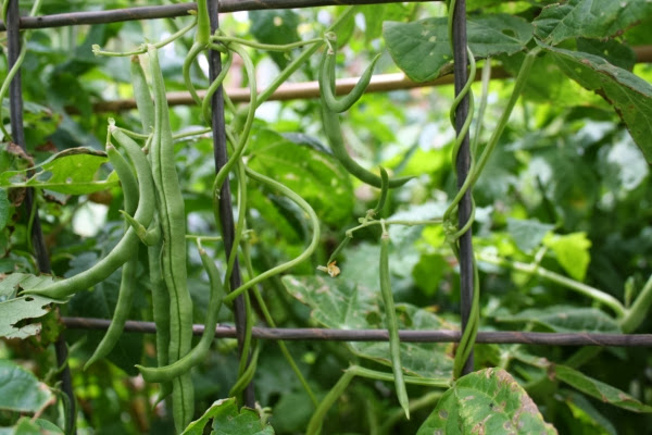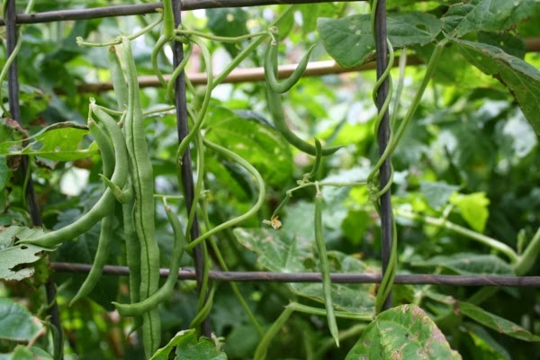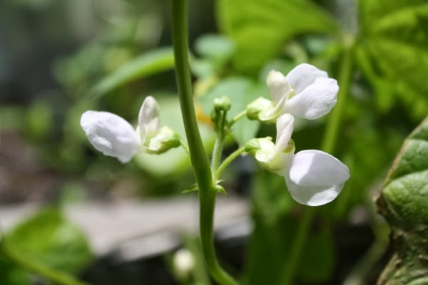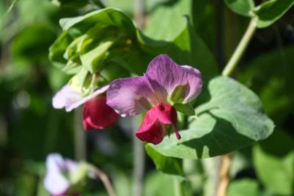 Purple-podded peas. This is the first year I have grown them and they are tall, strong and abundant with their colourful flowers and dark purple pods. Below is the flower of the climbing bean variety shown above. In the last day or two I have noticed the zucchinis have begun to open their flowers and put on strong growth.