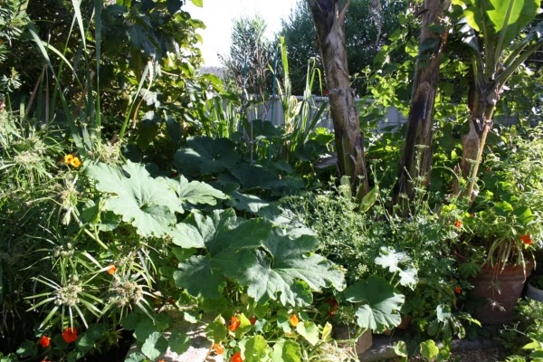Likewise, the beans that have been setting flowers have lovely little crops of beans already appearing and growing so quickly. These are a white climbing bean, much like my Pop used to grow. The bottom photo is of the corner garden area where I left things go a little crazy. At this time of the year through to autumn it jumps into jungle-mode, often revealing some surprises in autumn once it starts to thin out a bit. In this one area is a large chilacayote patch, a pumpkin, sugar cane, an avocado and tamarillo tree, a compost pile, worm farm, a choko vine and the bananas.