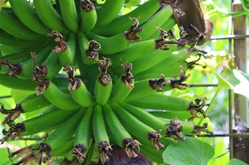 For the second year in a row we have a fine bunch of bananas coming along. The main risk for us here by the coast is the dry, strong winds that can sweep in over summer. As long as it is supported well, watered just enough and given kindly words we should see bananas around March.