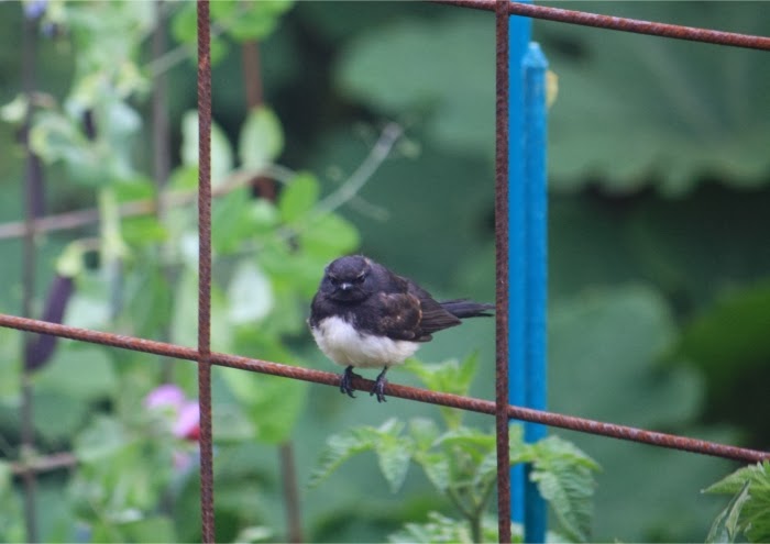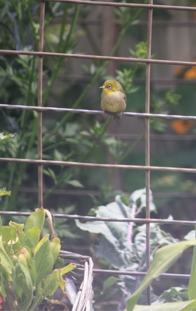 Various types of weld mesh are in the garden and used for plant supports and as a happy result are excellent perches for smaller birds such as silver-eyes and flycatchers. Both of which help reduce pest insect numbers in the garden. At this time of the year it is a common sight to see small flocks of silver-eyes moving through the garden in quite obscure areas and making off with green caterpillars to feed their young, or perching on the wire mesh and thrashing their prey about wildly before flying off with it.
