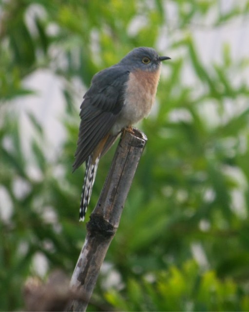 During winter this Fan=tailed Cuckoo made frequent visits over several mornings to our garden.