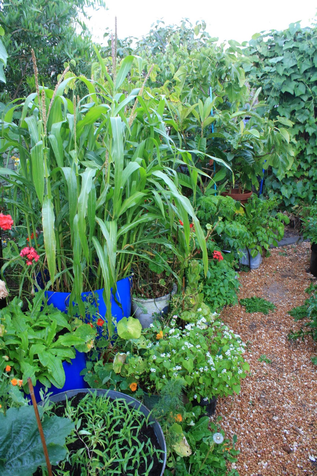 The corn has been coming on strongly in the past week. I have planted out a mix of all the bits of corn I have. It is difficult to get many of the heirloom or open-pollinated varieties of corn here in WA so for the small amount of seeds I have managed to keep I decided to try and create something of my own open-pollinated corn variety. In case you are wondering, yes, this will be a long term project.
