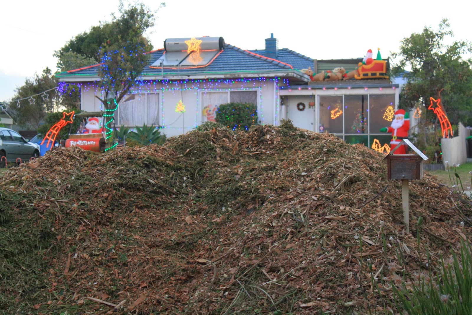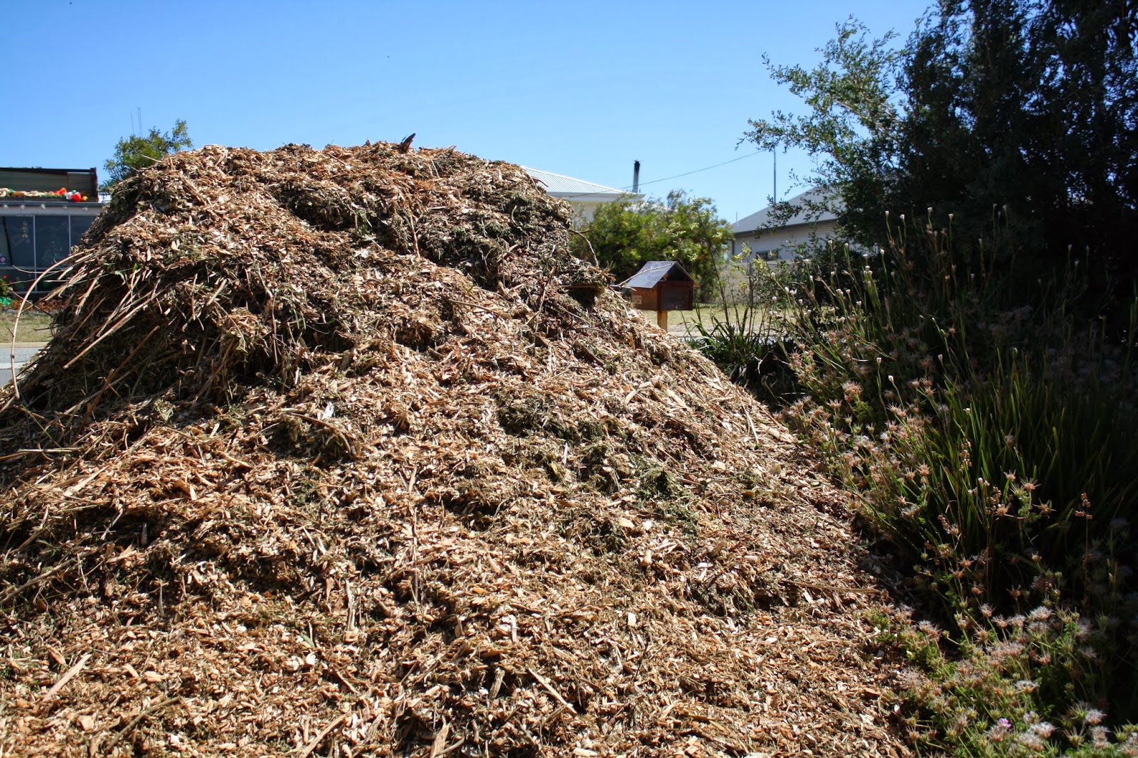 With the recent removal of the trees from the other block the tree loppers had a load they needed to dump elsewhere before they could make a start on the rest of the block. So I asked for them to deliver it to our house so that I could mulch some of the garden.