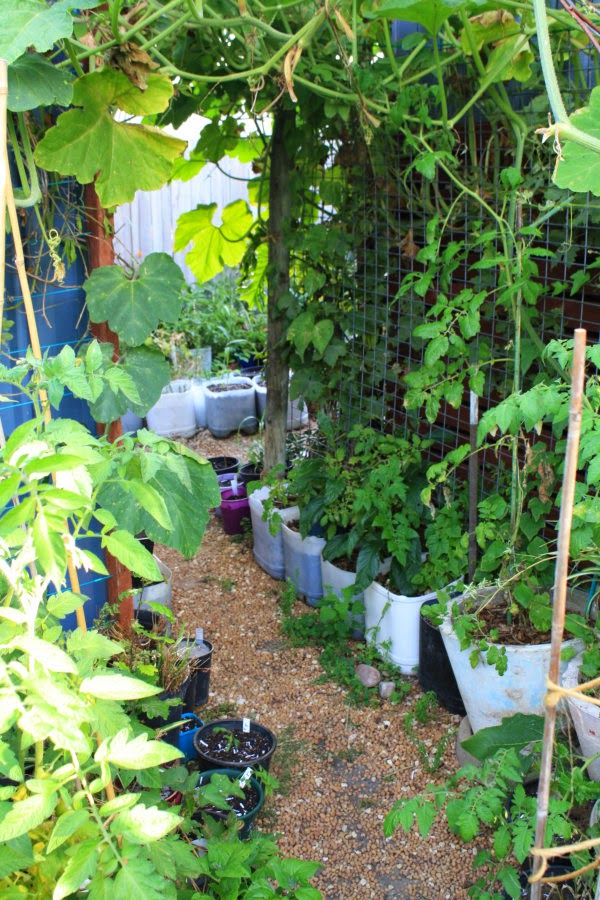 This summer I have really had to let the garden take charge of itself and simply keep the water up to it and train any stray tendrils or vines along the string or rope or cane that I have managed to put in place to guide them.