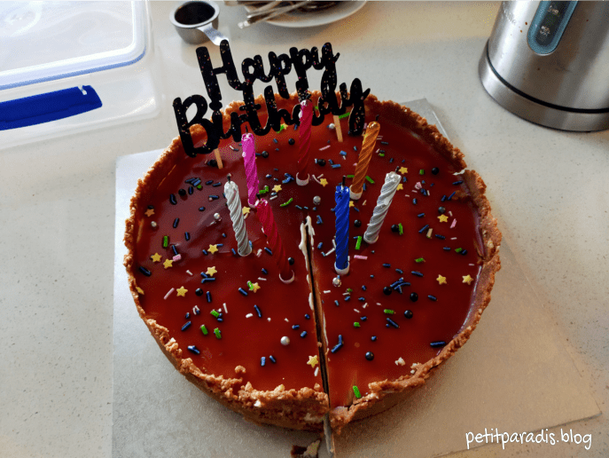 As it did this year. Not enough to put a stop to a birthday party today though. That’s how I remember that it was raining this time last year. This year, the youngest Little Fella declared himself worthy of a cheesecake for his birthday cake. And so it was.