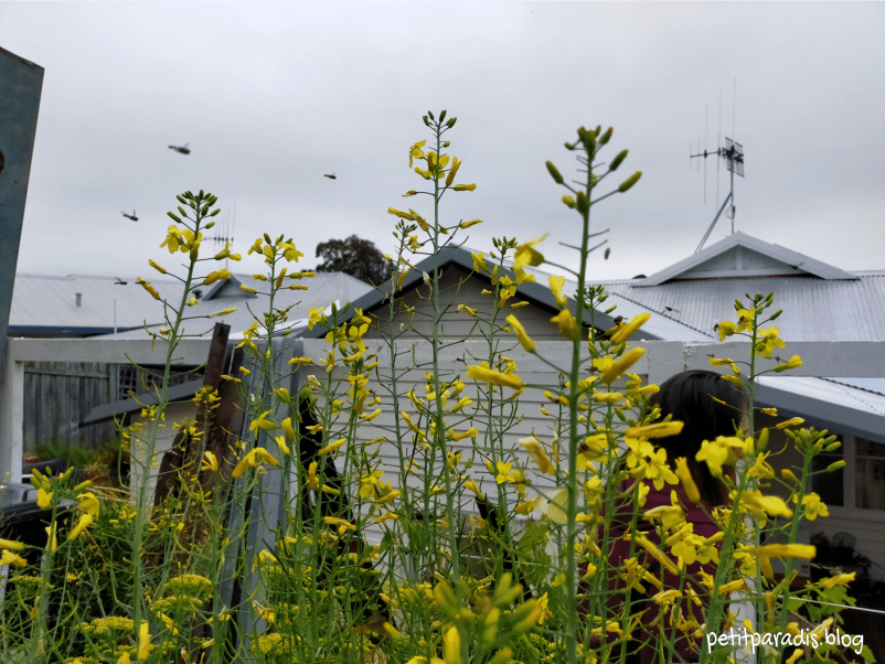 I have never seen hoverflies in such prolific, swarming abundance. They were coming in under the verandah and getting caught up in spider webs. Throughout the week they have maintained their presence in the garden but appear to have spread themselves out.