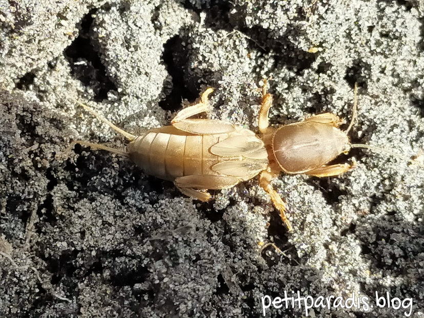I was delighted to discover also that this is the creature that makes some of the loudest calls in the garden, and which I had always thought was a frog. Not so. Listening to the call closely it does of course sound like a grasshopper or cricket – I just never expected such a sound to be coming from what appeared to be under the ground. I thought perhaps a kind of burrowing frog.