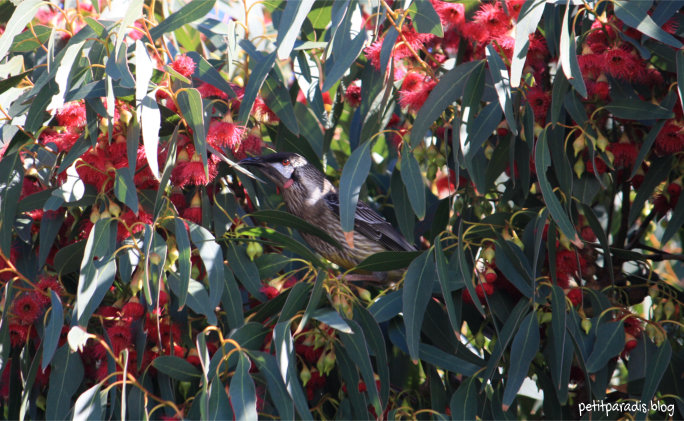 The outside of the red gum at this time of year is a profusion of blossoms. It vibrates with the sound of bees and flies and is cluttered with the squawks of Red Wattlebirds and the whistles of New Holland Honeyeaters. Now and then a Brown Honeyeater steals in to take of the spoils as … Continue reading The Red Gum & The Red Wattlebird